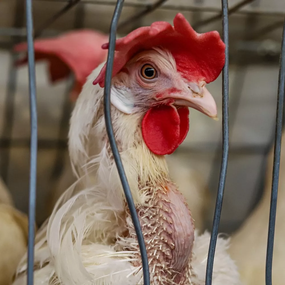 Hens in cages are trapped their entire lives. Each bird has barely enough space to stand, let alone turn around or stretch her wings. Cages are stacked in rows, with wire floors that tear at their feet and prevent any natural movement. They are denied basic comforts like perches, dust baths, or sunlight — their world reduced to metal and filth. From birth to death, these hens never touch the ground, never explore, never experience freedom.