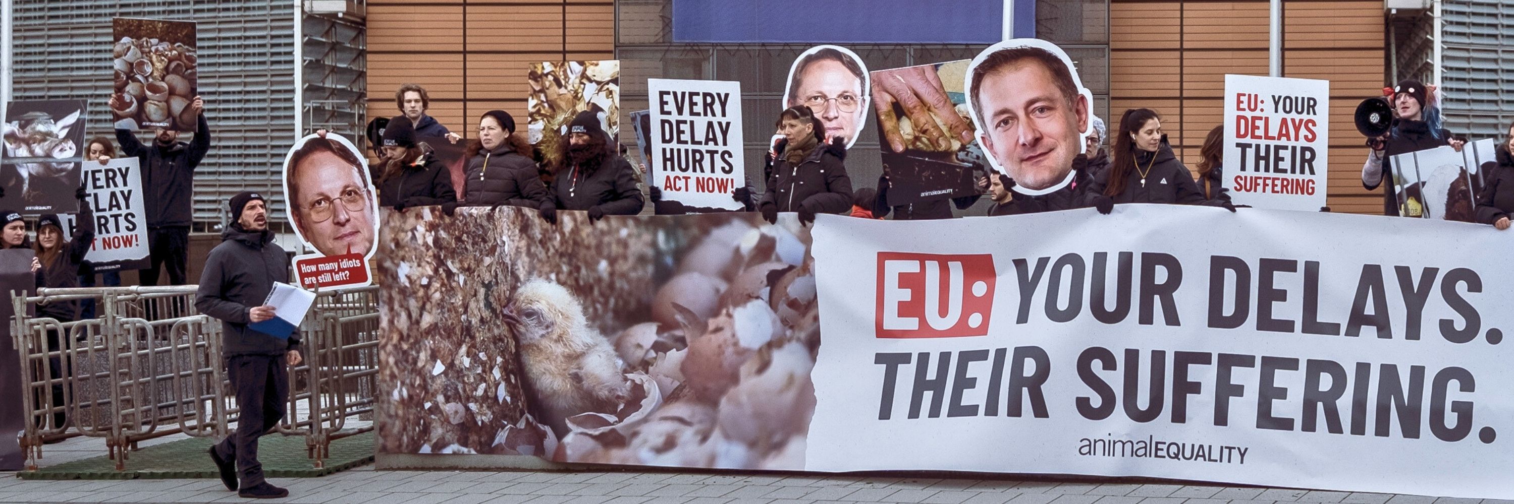 Update March 5, 2025: Animal Equality joined other organizations outside the Court of Justice in Luxembourg, calling on the EU Commission to provide a clear timeline and fulfill its long-standing promise to animals.