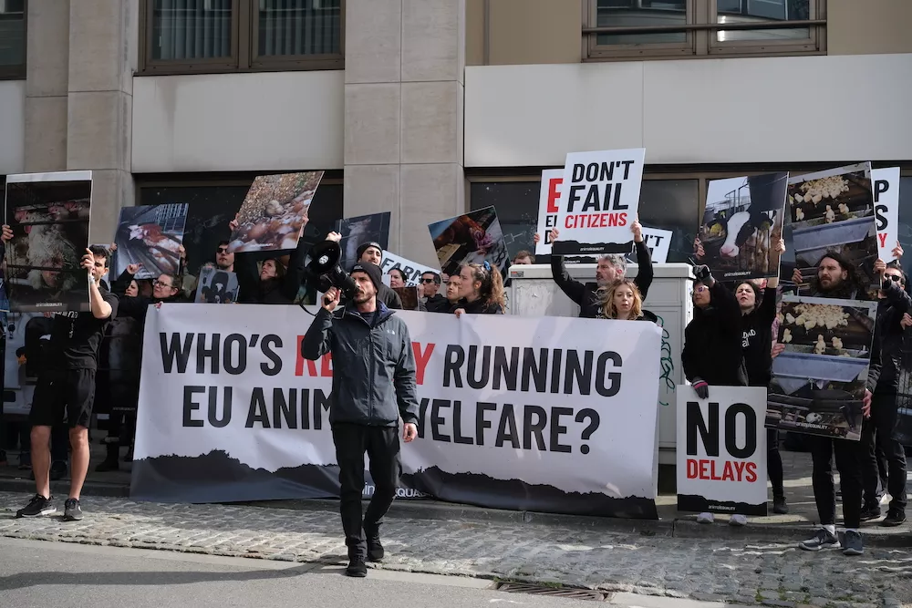 Update March 5, 2026: Animal Equality joined other organizations outside the Court of Justice in Luxembourg, calling on the EU Commission to provide a clear timeline and fulfill its long-standing promise to animals.